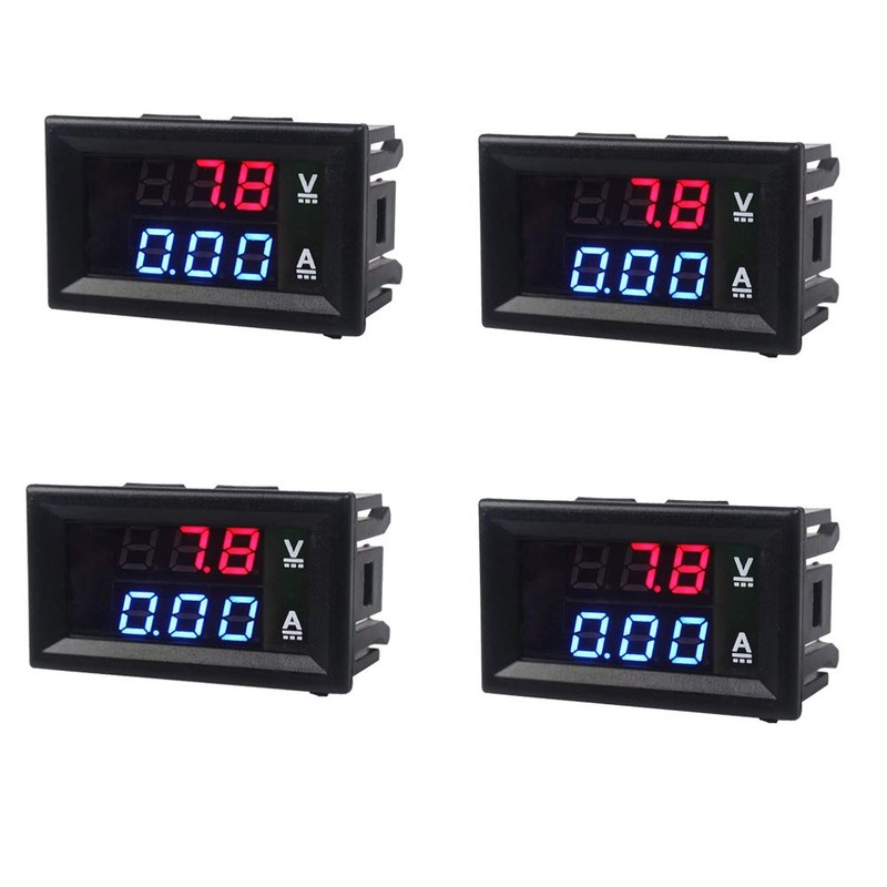 Mini Digital Voltmeter Ammeter DC 100V 10A Panel Amp Volt Voltage Meter Tester Blue Red Dual LED Display (Pack of 4)