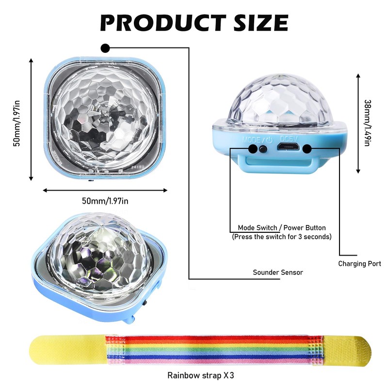 - Voice control: the lighting of the disco ball light automatically adapts to the beat, creating a special experience. Enjoy the visual spectacle with your portable disco ball party light anywhere and anytime.