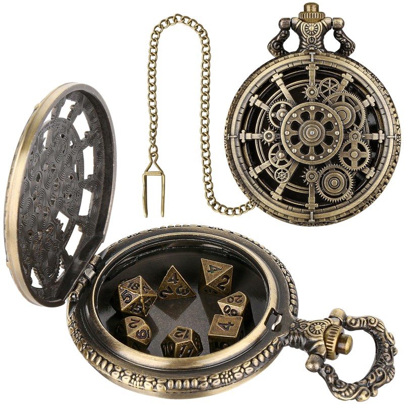 - RESISTANT ZINC ALLOY: Pocket watch dice is made from resistant zinc alloy, this watch case ensures durability and long-lasting use. The intricate design adds a touch of elegance and sophistication to your dice storage.