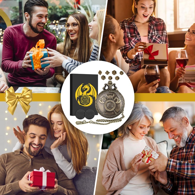 - COMPACT AND PORTABLE : The compact size of this pocket watch dice set allows you to easily carry, ensuring that your gaming essentials are always within reach and protected by fashion wherever your adventure takes you.