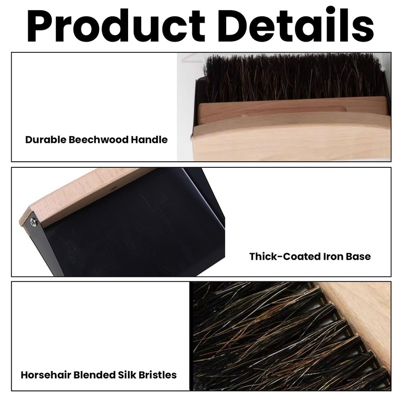 • High-quality Materials: This hand broom and dustpan set features a beechwood handle and thick-coated iron base, with durable horsehair blended silk for long-lasting and efficient cleaning.