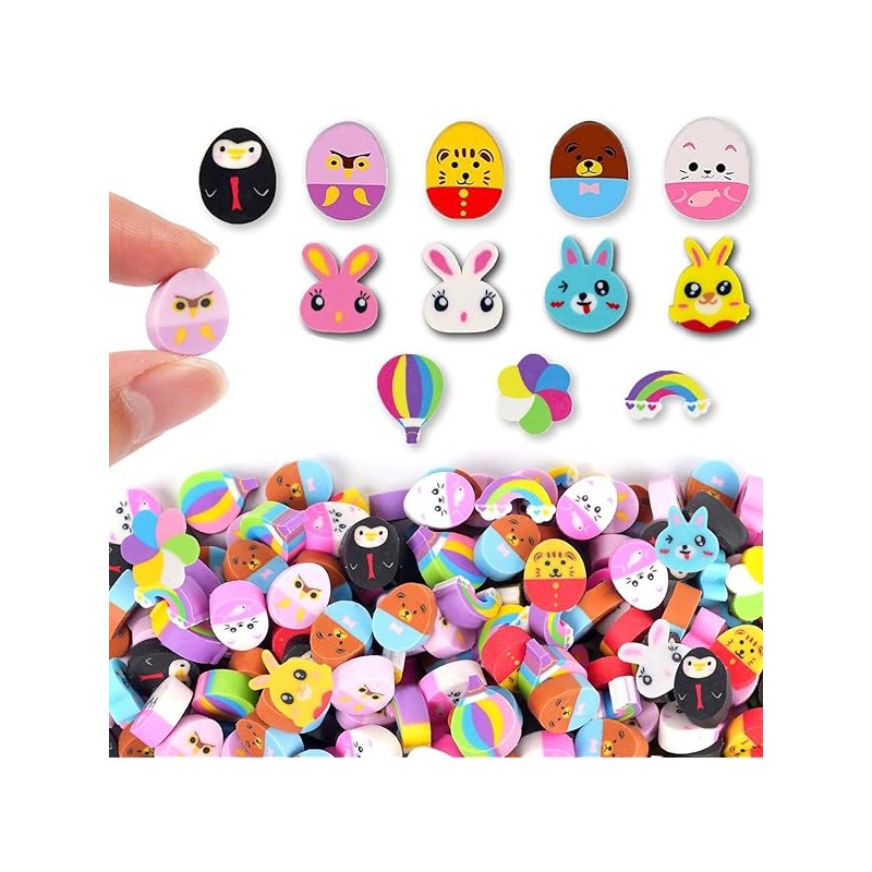 Mini Easter Erasers for Kids Bulk 150Pcs Egg Bunny Rainbow 12 Styles Novelty Rabbit Pencil Erasers for Easter Egg Fillers Party Favor Classroom Rewards