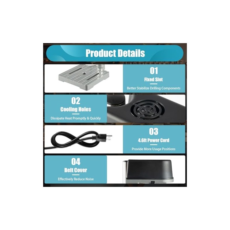• ✔ 【High Quality】 The mini drill press adopts full copper wire motor and cast iron base. The breakage rate of the drill bit is low, and the whole machine runs smoothly and has a long service life.
