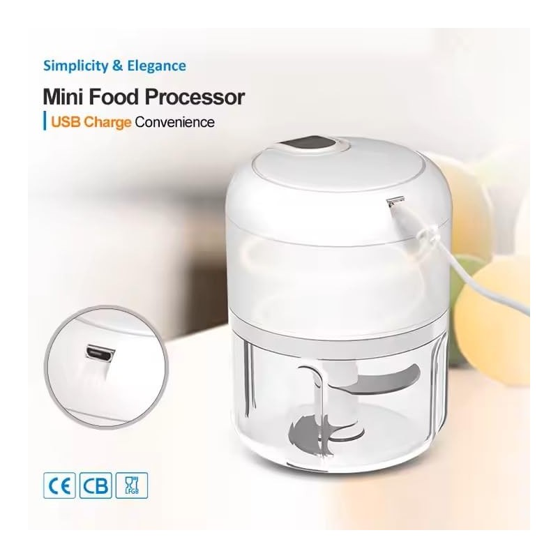 Mini Electric Food Processor, USB Rechargeable, Multi-functional Garlic Chopper with Accessories, White