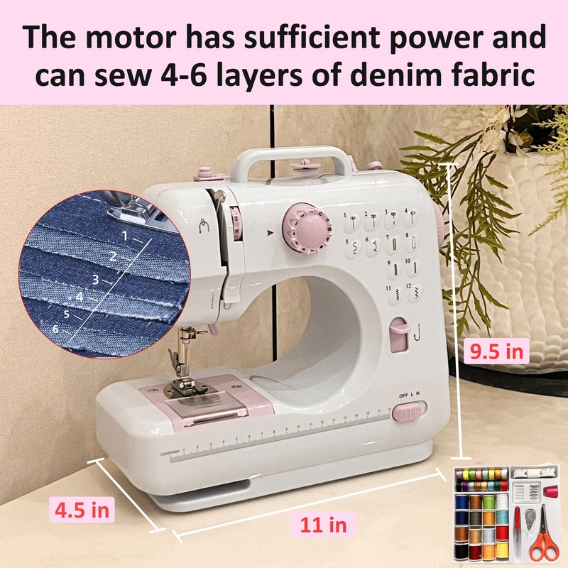 - 【Durable And Sturdy, With Clear Instructions Included】This is a compact and lightweight portable sewing machine (11x9.5x4.5 inches) with a sturdy metal internal structure, durability, and clear instructions. The detailed instructions inside the packaging and the testing fabric under the needle provide all the support you need to get started (the fabric is only used for testing the threading steps and is not a second-hand product!