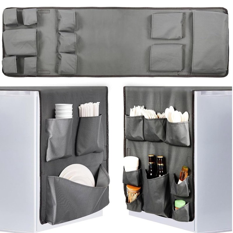 - MULTI-PURPOSE POCKETS - The large size has pockets storage in different sizes for dishes, condiments, utensils, any dorm accessories, and kitchen suppliers.