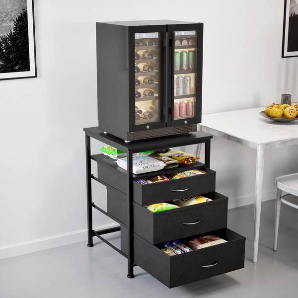 - 【Adequate Storage Space】This mini fridge shelf features three fabric drawers, providing ample storage space to meet your diverse storage needs. It offers a place to store snacks and kitchen utensils, keeping your items organized and tidy