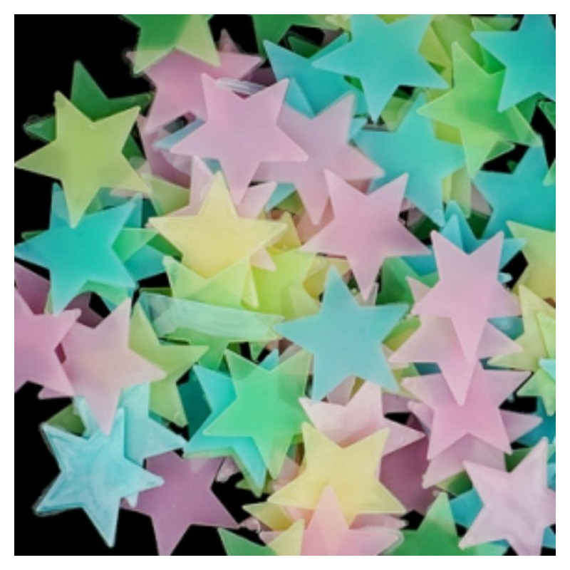 Mini Glow-in-the-Dark Star Wall Stickers for Interior Decor 80p Mixed 5ea