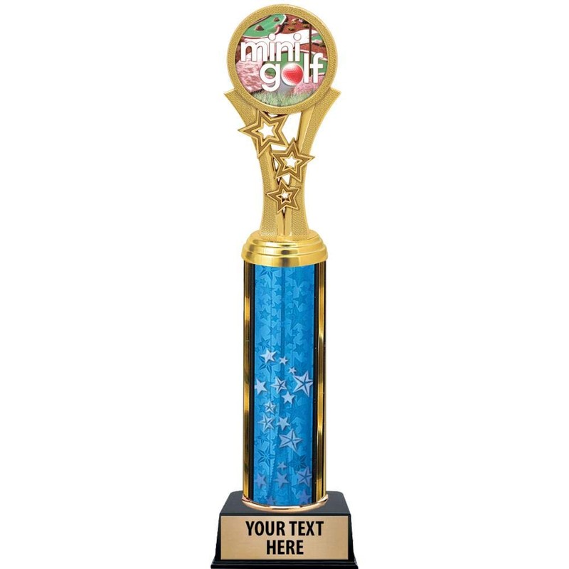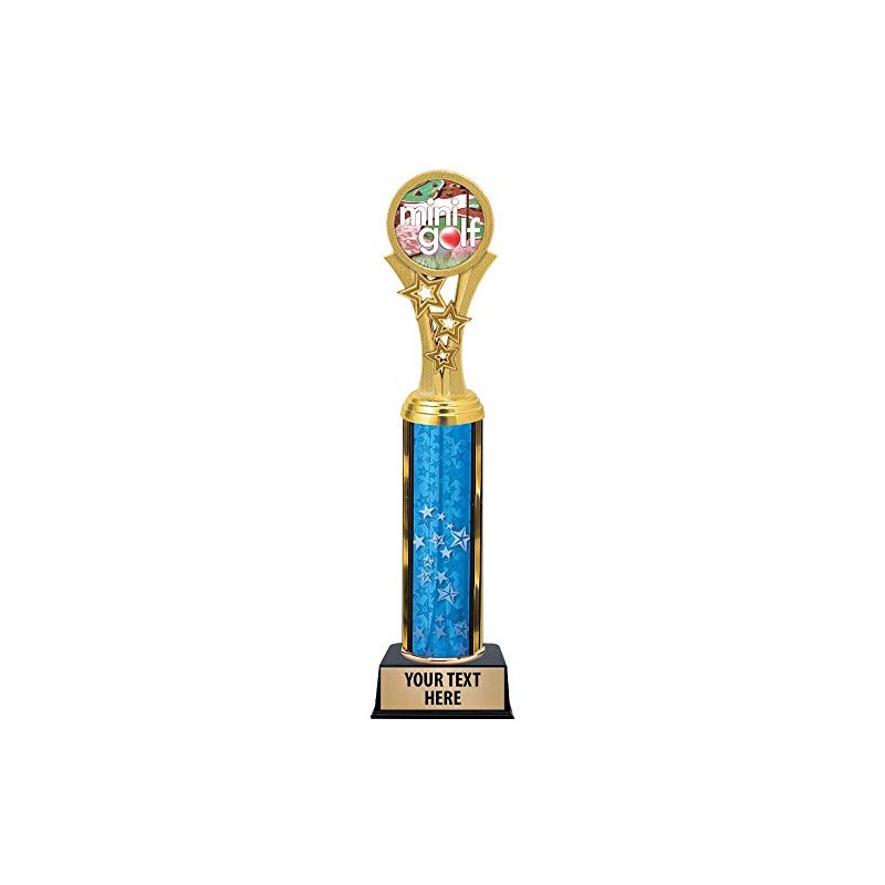 Mini Golf Trophies, 11" Blue Stars Mini Golf Trophy Award, Free Engraving