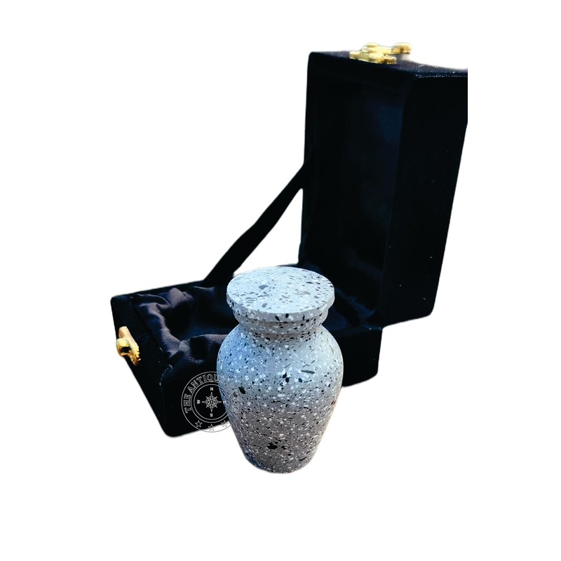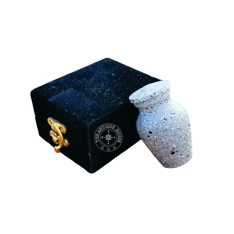 Mini Grey Keepsake Urn Handcrafted Small Cremation Urn For Human Ashes with Black Velvet Box