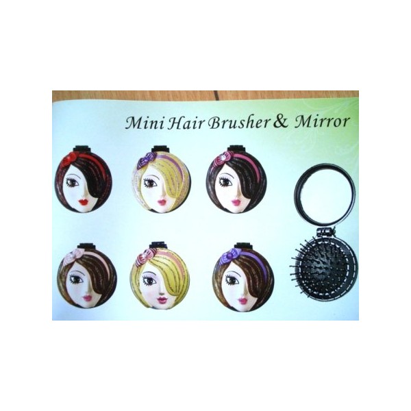 - This mirrored compact opens to reveal a pop-up brush inside.