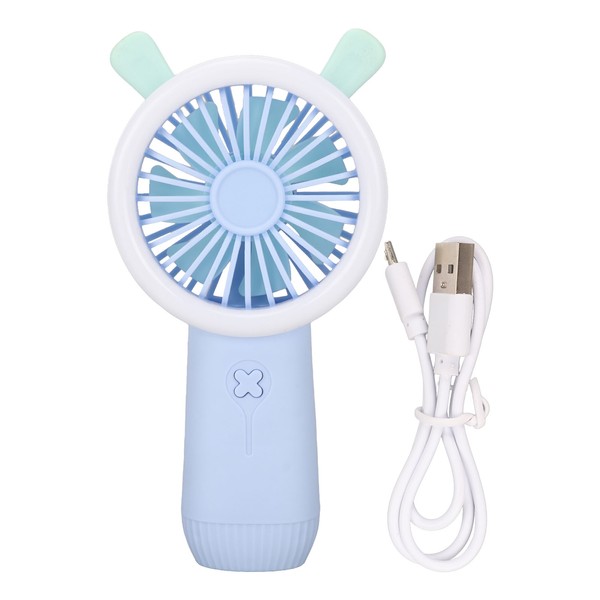 Mini Handheld Fan 3 Levels Adjustable USB Rechargeable Cute Rabbit Appearance Portable Fan for School Outdoor Blue