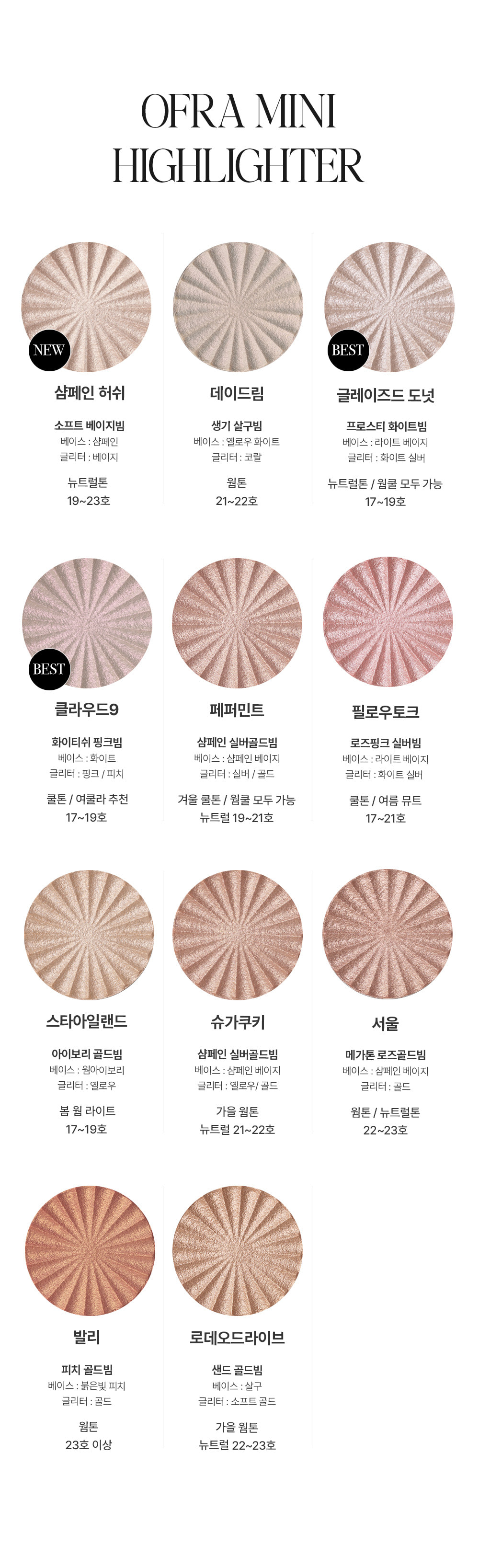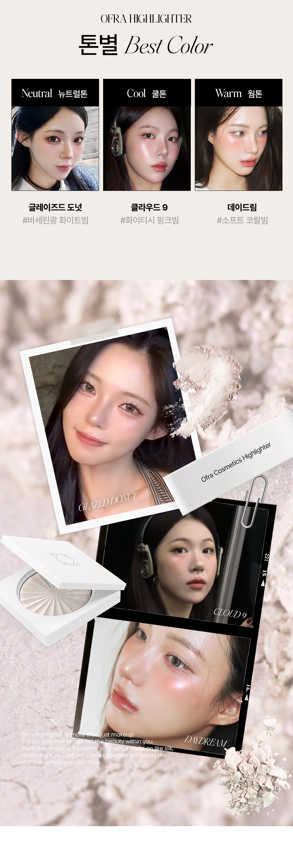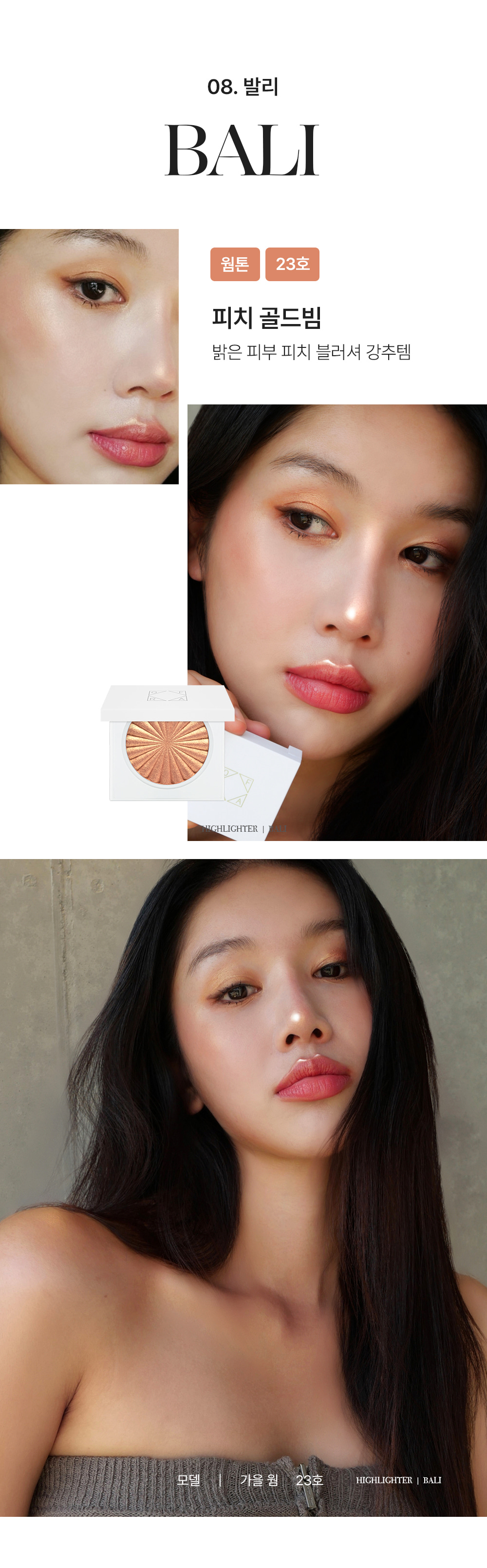 제품명 : 미니 하이라이터 │ 용량 : 3g │ 사용기한 또는 개봉 후 사용기간 : 제조연월일로부터 34개월 │ 제조업자/제조판매업자 : 오프라 코스메틱 / 위다이브 주식회사 │ 전성분 : 아이소도케인, 마이카, 탈크, CI 77891, 징크스테아레이트, 네오펜틸글라이콜다이헵타노에이트, 에틸헥실팔미테이트, 펠드스파 파우더, 카올린, 쿼츠, 쿼츠, 페녹시에탄올, 알코올, CI 77491, [+/- CI 16035] │기능성화장품 심사필여부 : 해당사항 없음 │사용 시 주의사항 : 1) 화장품을 사용하여 다음과 같은 이상이 있는 경우에는 사용을 중지하여야 하며, 계속 사용하면 증상이 악화되므로 피부과 전문의 등에게 상담할 것 가) 사용 중 붉은 반점, 부어오름, 가려움증, 자극 등의 이상이 있는 경우 나) 적용 부위가 직사광선에 의하여 위와 같은 이상이 있는 경우 2) 상처가 있는 부위, 습진 및 피부염 등의 이상이 있는 부위에는 사용을 하지 말 것 3) 보관 및 취급 시의 주의사항 가) 사용 후에는 반드시 마개를 닫아둘 것 나) 유아ㆍ소아의 손이 닿지 않는 곳에 보관할 것 다) 고온 또는 저온의 장소 및 직사광선이 닿는 곳에는 보관하지 말 것 │ 품질보증기준 : 관련 법 및 소비자 분쟁해결 규정에 따름 │ 제조국 : 미국 │소비자 상담 관련 전화번호 : 위다이브 주식회사 / 070-4006-4327