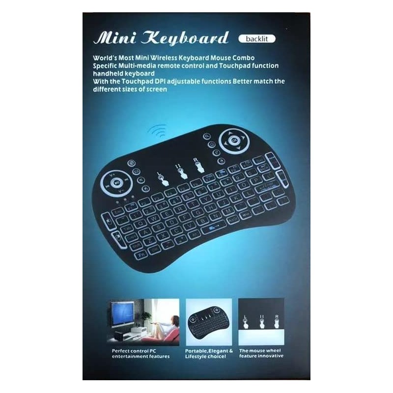MINI i8 2.4GHz 3-color Backlight Wireless Keyboard with Touchpad is a highly unique keyboard with user-friendly design and perfect performance. It is particularly designed with 3-color backlit, which emits soft and mild light while using the keyboard. Thanks to its humanized design, it brings little hands fatigue to you. The wireless style makes the keyboard easier to use. What's more, it is designed with a built-in touchpad for convenient operation.