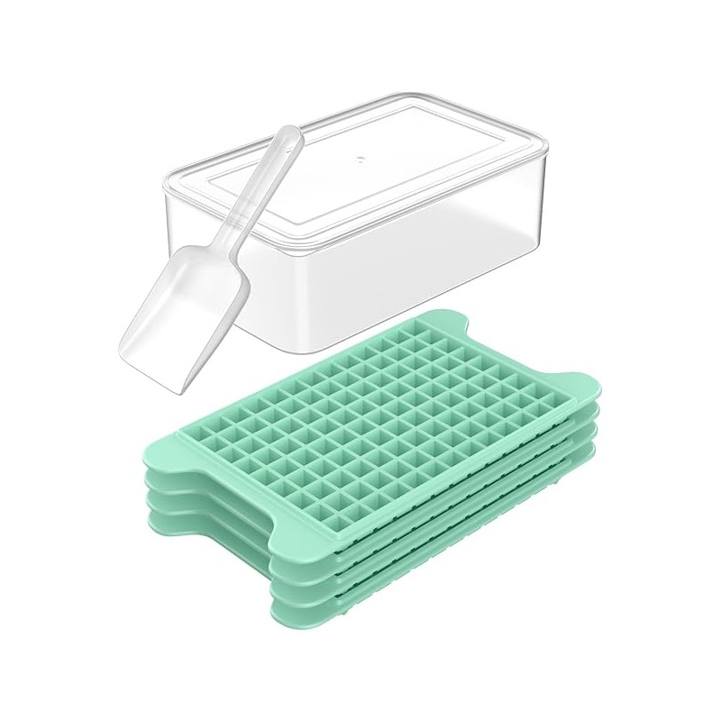 Mini Ice Cube Tray for Freezer: FDDBI Small Ice Trays for Freezer with Bin - 117×4PCS Easy Release Nugget Ice Tray - Crushed Ice Tray with Container
