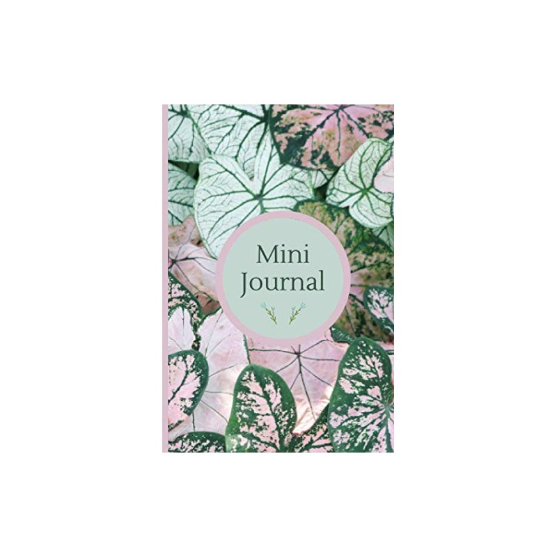 Mini Journal: Pocket Notebook Journal Notepad 4"x6", Unruled/Blank Small Notebook, Pink and Green Leaves Cover