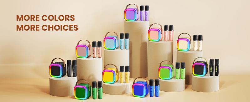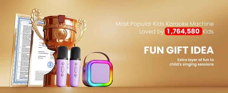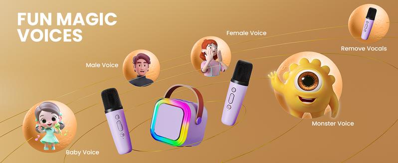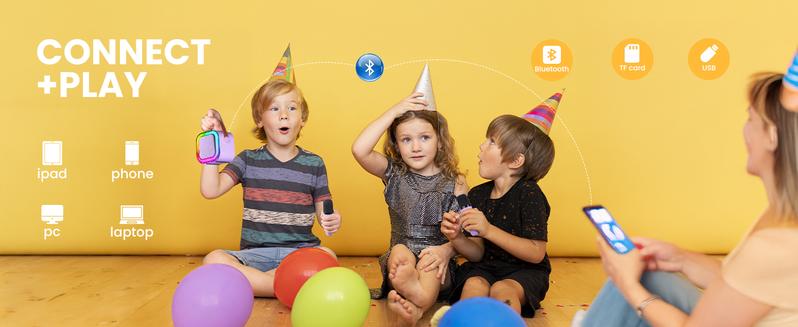 Crystal Clear Sound & Endless Fun: As the pioneer of mini karaoke machines for kids, We always provides authoritatively certified child-friendly materials and superior sound with advanced audio driver and digital signal processor. 5 voice change effects add an extra layer of fun to your child's singing sessions, making every moment more enjoyableSeamless Bluetooth Connection: This karaoke machine comes with speaker and wireless microphone that automatically connect to each other upon startup. Bluetooth 5.3 technology ensures instant pairing, stable connection, and an impressive range of 50 ft without obstacles. Perfect for parties and gatherings! Mini but powerful and loud, let you stay always from complex links and cablesLight Up the Party: Let your child's inner star shine with the disco lights that create an immersive and dynamic karaoke experience. The independent light button allows for easy control and endless entertainment for hours on end. The built-in kids MP3 player lets you sing along to your favorite songs. Be the star of the party anytimeCute & Compact: User-friendly design ensures operation with ease, especially for girls and boys aged 3-12 years old kids. And very easy to carry, allowing your child to take their music wherever they go. In addition to home entertainment, you can also use it as a speaker for work or daily lifeA hit for everyone from toddlers to adults: This karaoke machine is crafted from compact design, and non-toxic materials make it a unique gift for all ages. Perfect for birthdays, Christmas, Easter, Halloween, Thanksgiving, Galentines, or any other celebration.Great singing gift ideas for kids 3, 4, 5, 6, 7, 8, 9, 10, 11, 12 + year old girl boys teens
