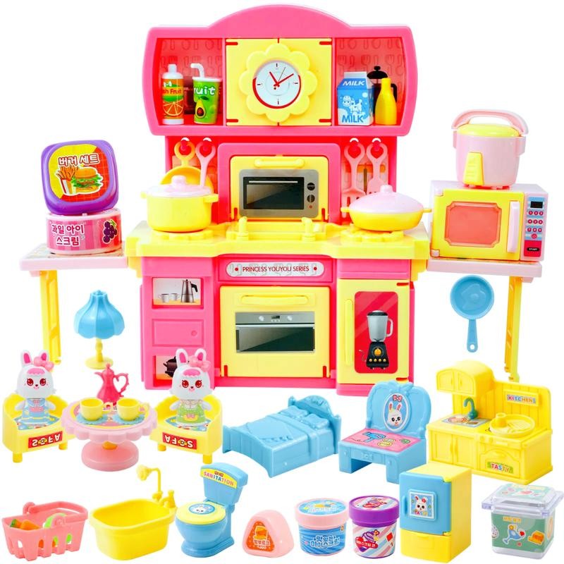 Mini Kitchen Playset Toy for Kids Girls Play Kitchen Set Toddler Pretend Kitchen with Cooking Stove, Play Sink, Play Food
