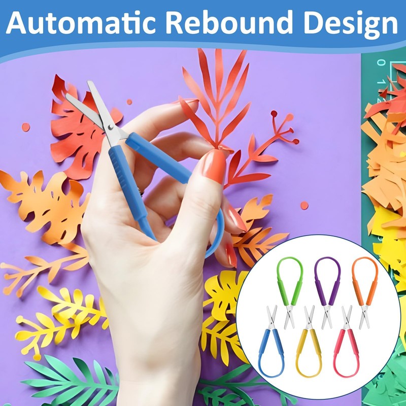 This child scissors set of 6 mini loop-handle scissors is designed for young children and individuals with limited hand strength, offering a safe and easy way to learn cutting skills.