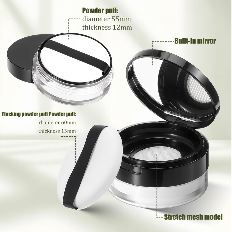 - Package Includes: This set includes a large 20g (0.7 oz) compact and a small 10g (0.33 oz) compact, both with a puff for added convenience