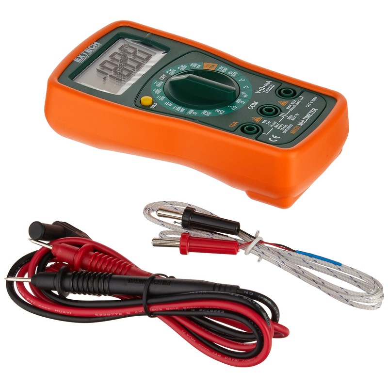 - Voltaje CA/CC, corriente CC, resistencia, temperatura tipo K, continuidad/diodo
