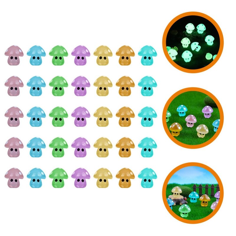 Mini Mushroom Statue Mini Glow in The Dark Mushroom Ornaments Luminous Tiny Mushroom Figurines Garden Mushroom Outdoor Decor, 35Pcs Mini Mushroom Ornament