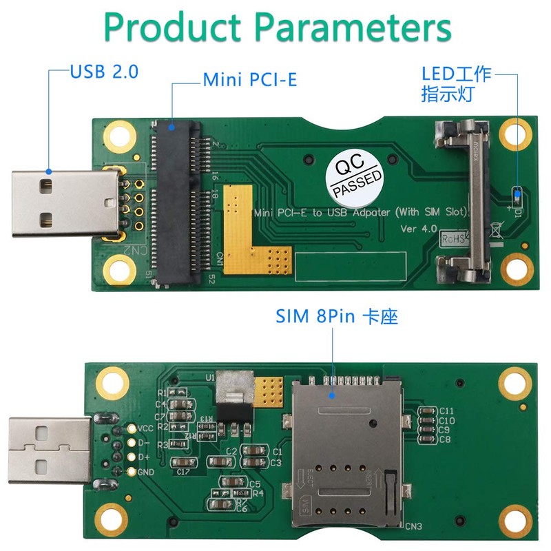 Mini PCI-E to USB Adapter With SIM card Slot for WWAN/LTE Module
