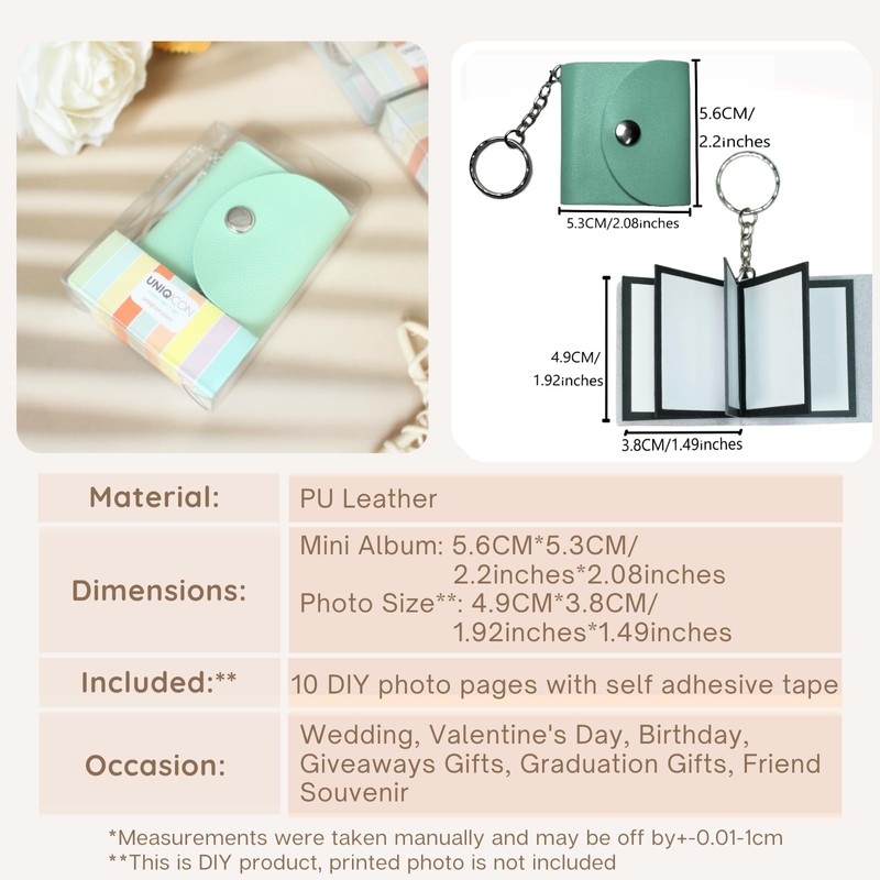 - 1. Uniqicon's DIY mini leather photo albums and picture keychains aren't just gifts, they're a fun and easy Do It Yourself project. With the self adhesive tape included, you can easily print out your photos and stick them in yourself, creating a unique and personalized gift that your loved ones will cherish forever. Perfect for Mother's and Father's Day, Uniqicon's custom photo albums and keychains make great gifts that you can enjoy making yourself. 📷💕