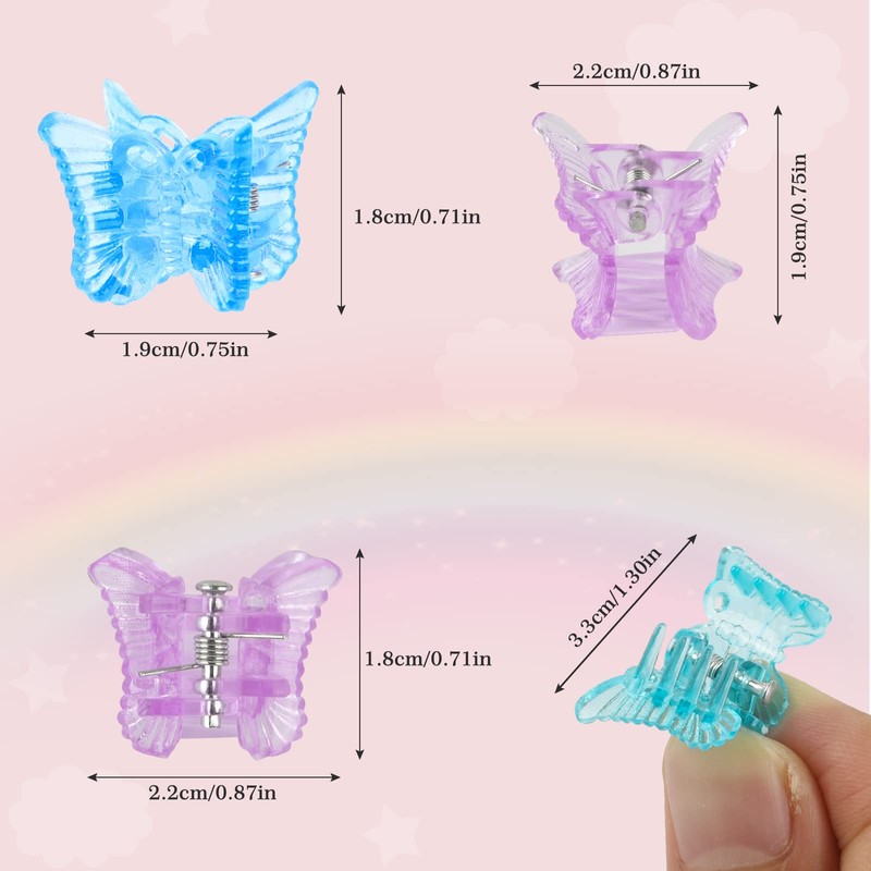 14 colores diferentes, colores brillantes, vibrantes y atractivos, decora a tu niña y haz que sea el foco en la multitud. Hecho de plástico y metal de alta calidad, úsalo varias veces, no te preocupes por que se dañen o se decoloren. Patrón de mariposa transparente, mantendrá tu cabello bien y no se desliza ni se rompe fácilmente.