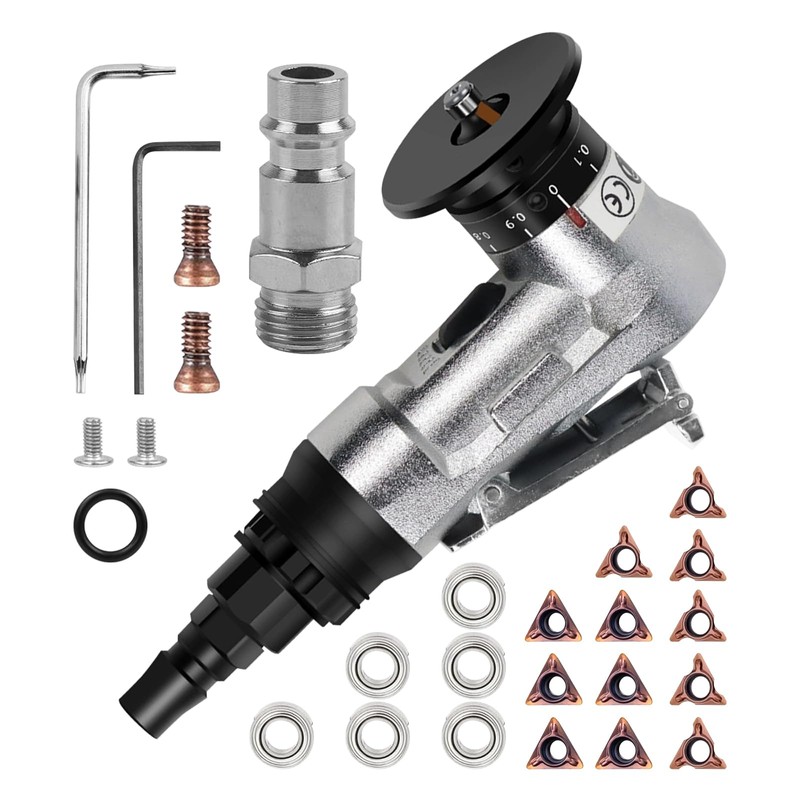 - Wide application: pneumatic chamfer tool currently adopts the thinnest nut locking bearing that can chamfer in the tightest and flatest space, and is suitable for different angles, such as straight edge chamfers, inner and outer round hole chamfers, irregular chamfering and deburring metal edges.