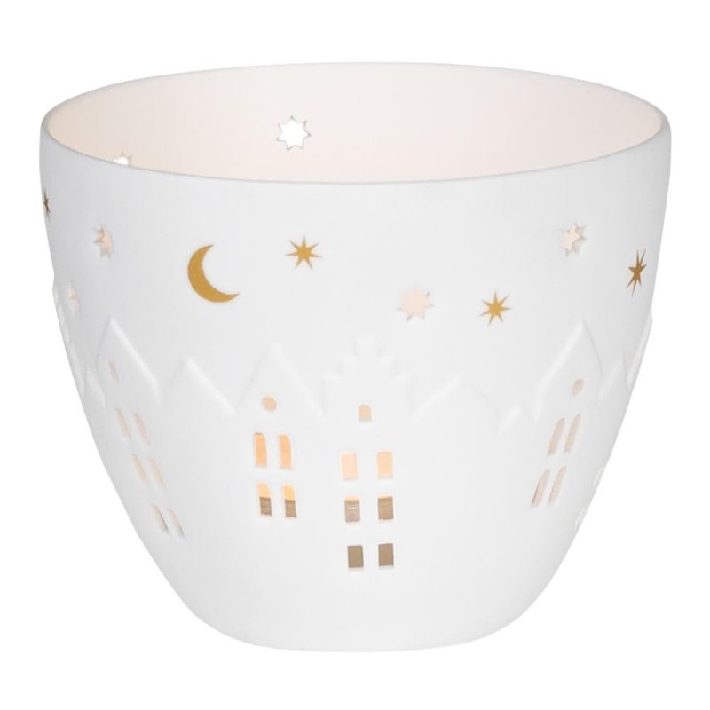 In the mini poetry light houses you can insert a tea light and enjoy relaxed candlelight. It is made of unglazed porcelain and a hole pattern through which the candle light can shine.