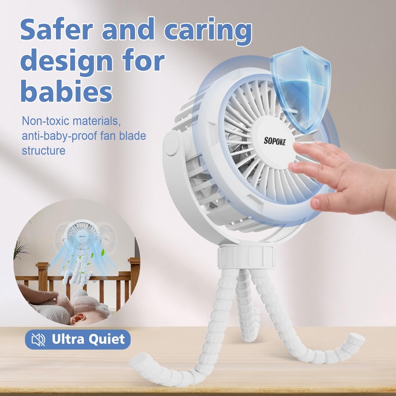 SOPOKE Mini Portable Baby Stroller Fan,3 Speed Personal Handheld Fan,Battery Operated Rechargeable 360° Flexible Tripod Cooling Fan, Suitable for Car Seat Crib Treadmill Golf Cart Travel(Yellow)