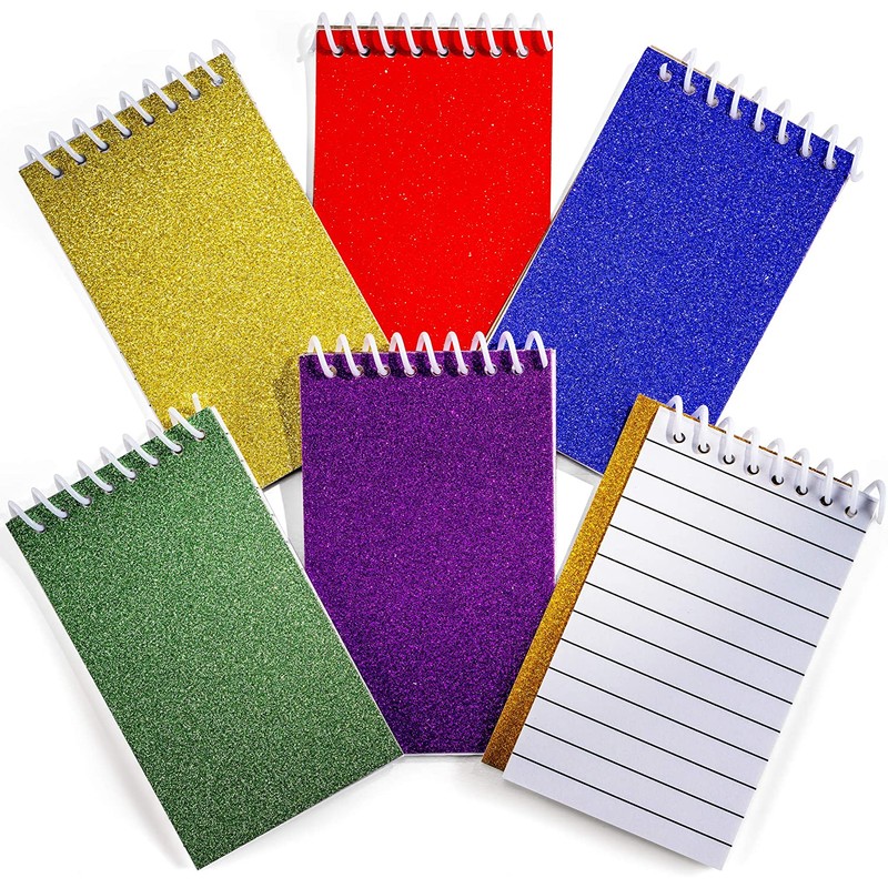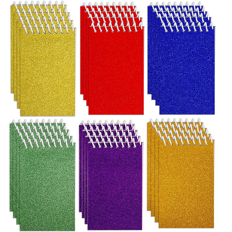 - PACKAGE INCLUDES: 24 glitter designed notepads In assorted bright colors includes orange, red, green, Purple, and yellow