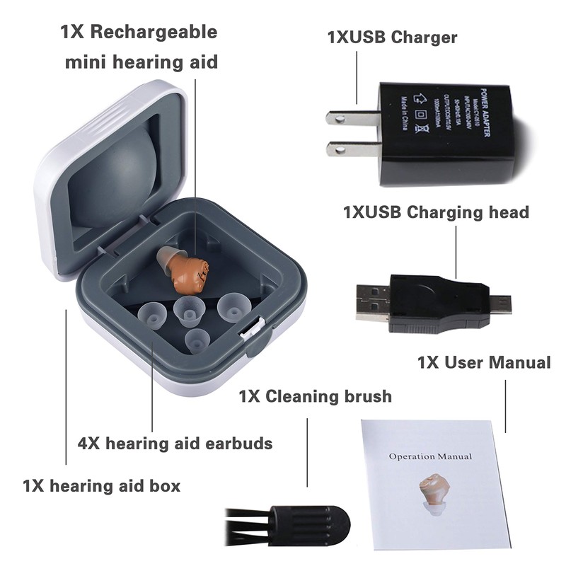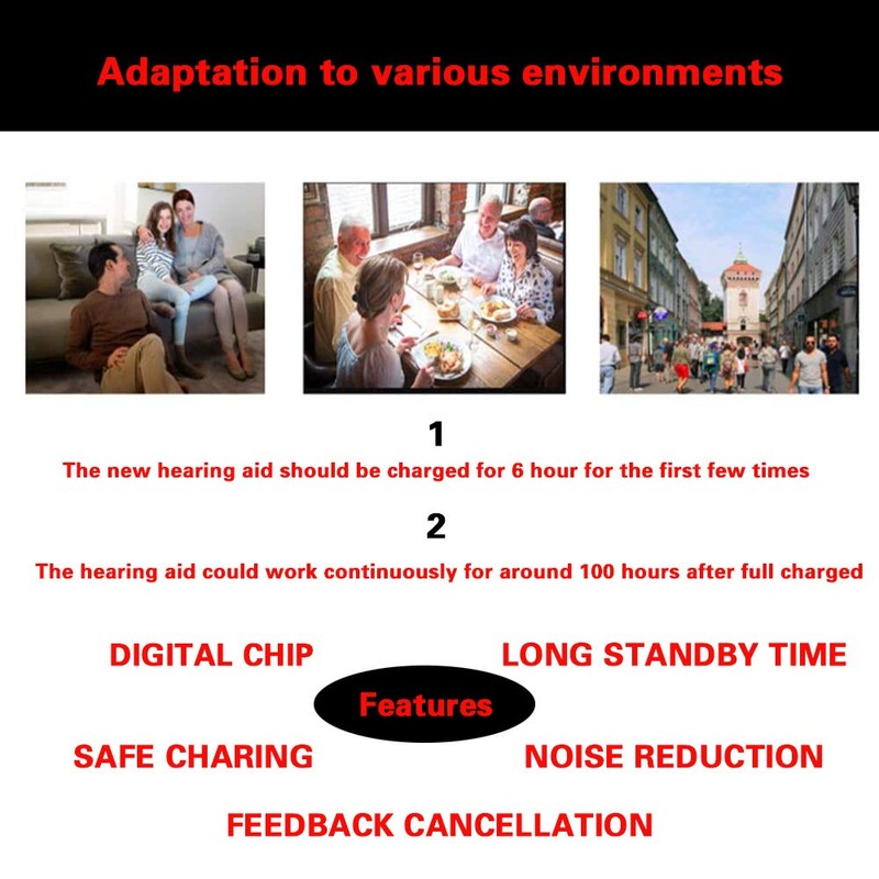 • 【Mini Hearing Aid】 The ultra-compact rechargeable design allows you to wear it on your ears so that no one can easily see it and hide it perfectly.