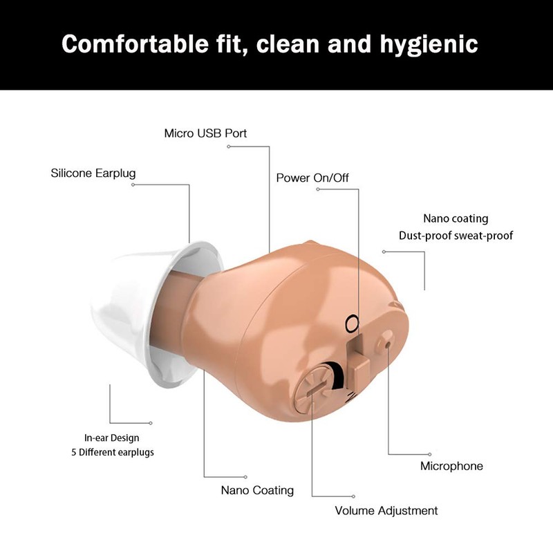 4. Important - Please do not think that if the sound is unnatural, it is an inferior product and do not expect the sound to feel exactly the same as natural. We have done our best to restore sound in the chip, but the sound is still coming from an electrical signal. No company in the industry currently restores sound perfectly, only to the point of being close to natural, so it usually takes about a week for the wearer to get used to the hearing aid, just like wearing new glasses. So give it a chance, and give yourself a chance to enter the new world of sound.