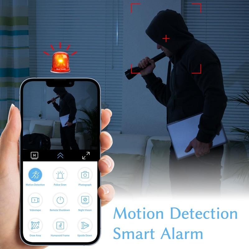 • 【Security Camera】:Mini camera multiple security protocols protect your data and privacy. Indoor and outdoor cameras can choose to store the saved materials on the SD card. (need to be purchased separately).