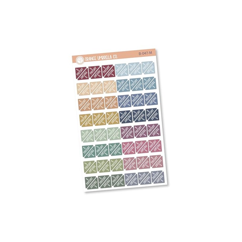 Mini Sized Pay Day Corner Planner Stickers, Muted Rainbow Pay Day Deposit Reminder Planner Labels, Payday Stickers (B-047-M)