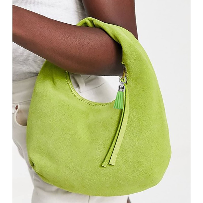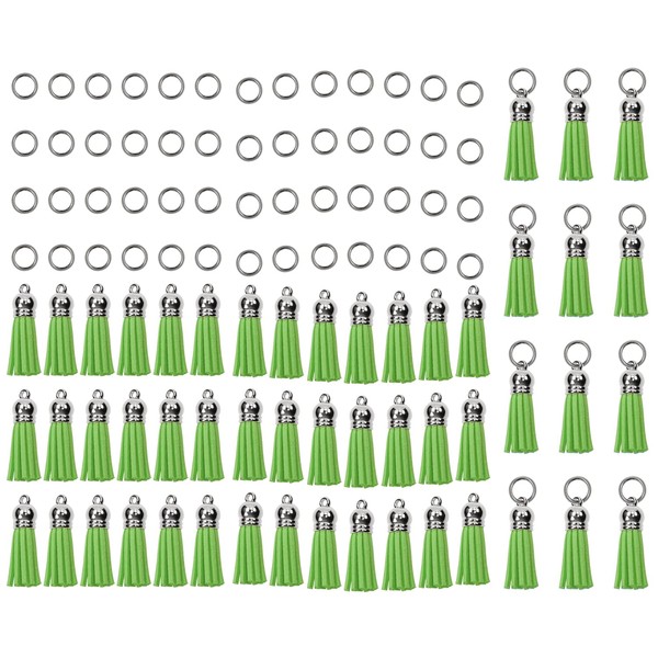 Mini Skater Suede Faux Leather Tassels for Jewelry Making 100Pcs Silver Cap Leather Trim Fringe Tassel Bulk with 100Pcs Jump Rings Sewing Accessories (Yellow-Green)