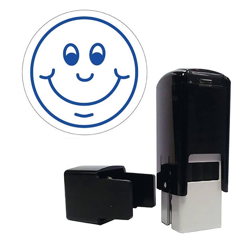 Mini Smiley Happy Face Pre Inked School Reward Feedback Marking Stamper Stamp 10mm Primary Teaching Services (Blue)