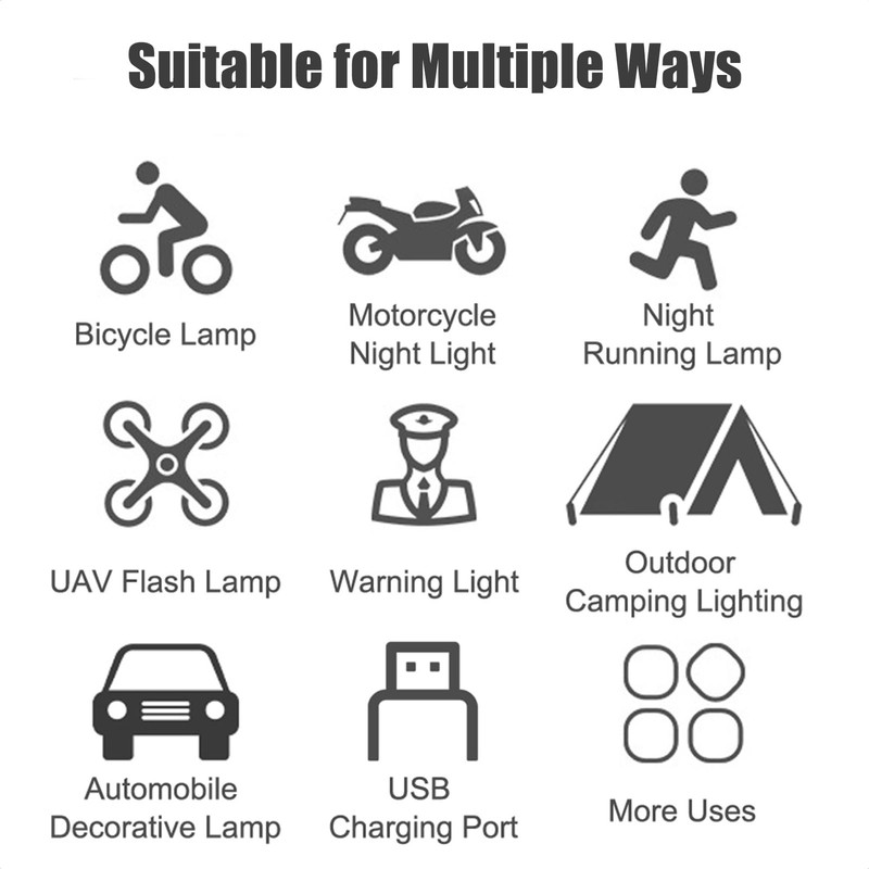 - 🔩【Easy to Use】Long press the power button for 2 seconds to switch on and off, and short press to switch the light color/mode. You can use velcro and rubber bands to attach your strobe lights to cars, bikes, drones, and more. High-brightness lamp beads provide enough light and night warning when you are active at night.