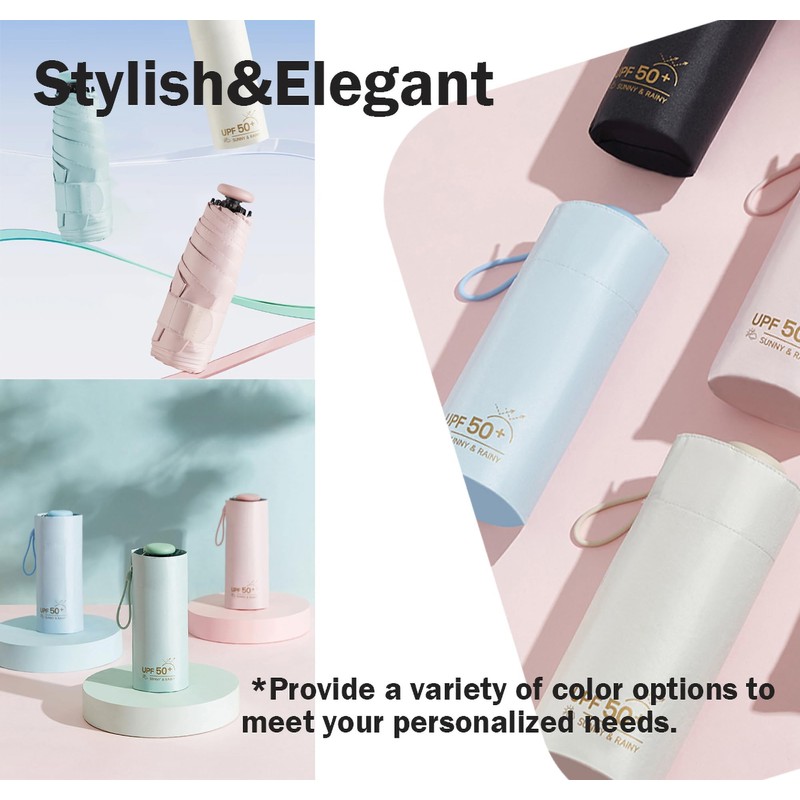 Mini Sun Travel UV Umbrella Anti UPF 50 Protection 99.9% Micro handle Coating Layer Fabric Compact/Lightweight Small Portable Backpack/Folding Purse Pocket Umbrella Rain/Blocking/Men Women Kids