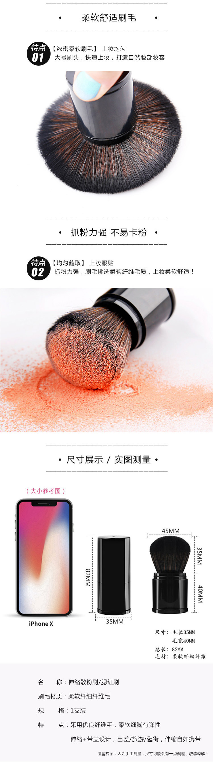 🌟 Discover the ultimate convenience with our mini telescopic brush, designed for beauty on the go. Its compact size makes it a perfect fit for any makeup bag or purse, ensuring you're always ready for a quick touch-up.