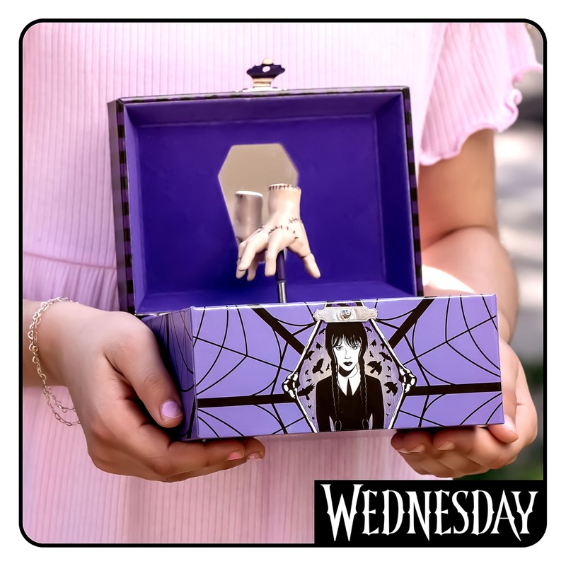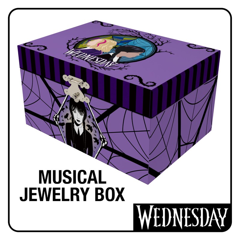 - MELODIES & MEMORIES – Open the lid to reveal a twirling Wednesday figurine and the hear the theme from Wednesday that brings joy to every jewelry piece stored inside. Perfect for kids aged 3+, it’s a keepsake treasure box they’ll adore!