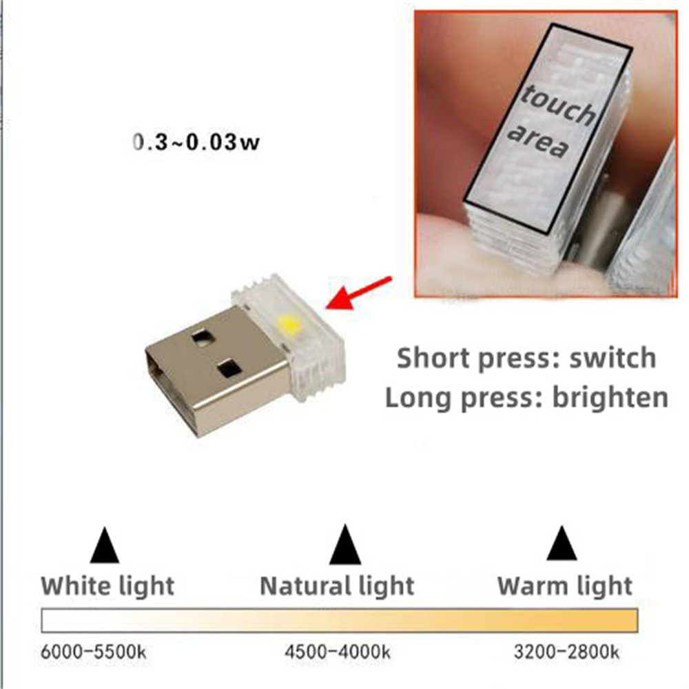 Mini USB 0.3W LED Three-Color Night Light Camping Dimmable Touch Energy-Saving a