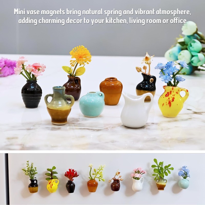 - FUNCTIONAL DESIGN: Each vase magnet features strong magnetic backing and a small opening to hold tiny artificial plants, dried flowers, or decorative items