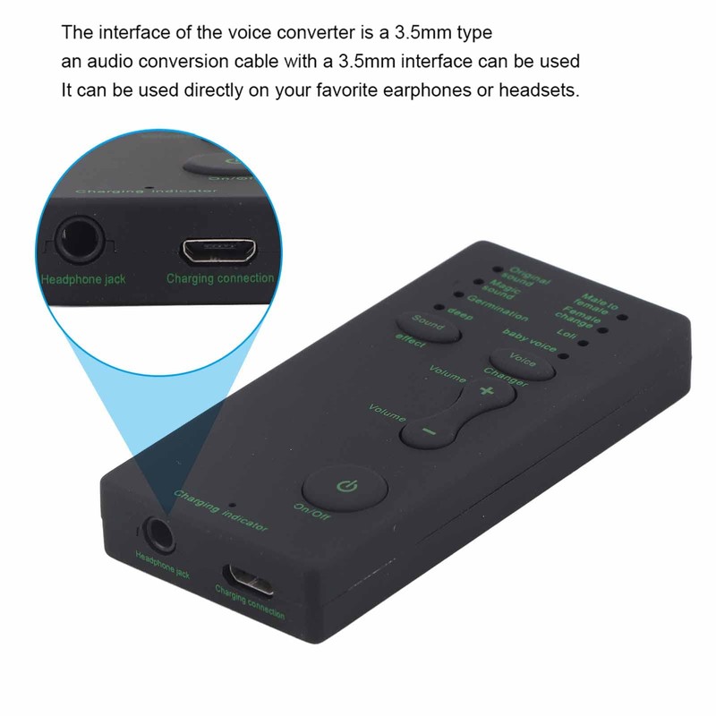 5. Our voice changer features a 3.5mm interface, allowing for easy connections with your favorite headphones or headsets. This means you can enjoy the voice-changing magic without sacrificing quality. Simply plug in your conversion cable and access rich sound with minimal effort.
