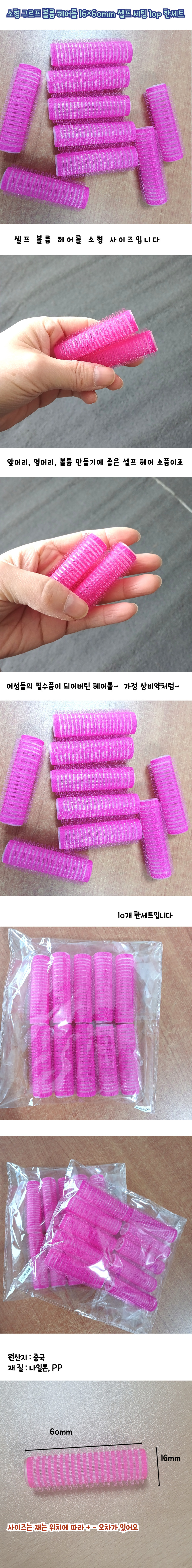 Mini Volume Hair Rollers 16x60mm, Self-Setting, 10-Pack One Set 2ea