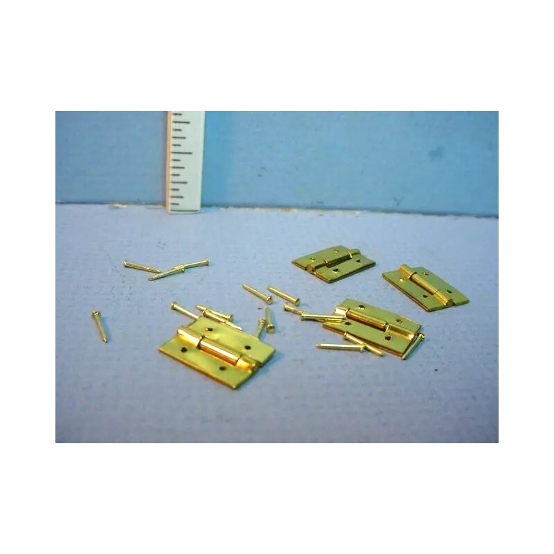 Miniature Butt Hinges (4) wi Nails Brass 1/12 Sc