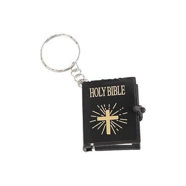 - DESIGN FEATURES: Miniature Holy Bible keychain with decorative cross charm, perfect for adding spiritual significance to your keys or bag