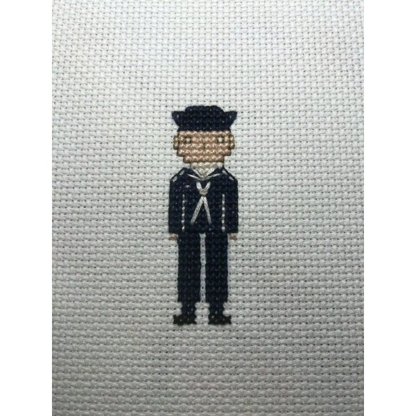 Miniature Navy Sailor finished cross-stitch - great gift idea - Military